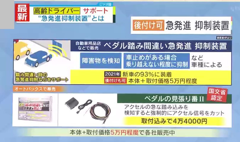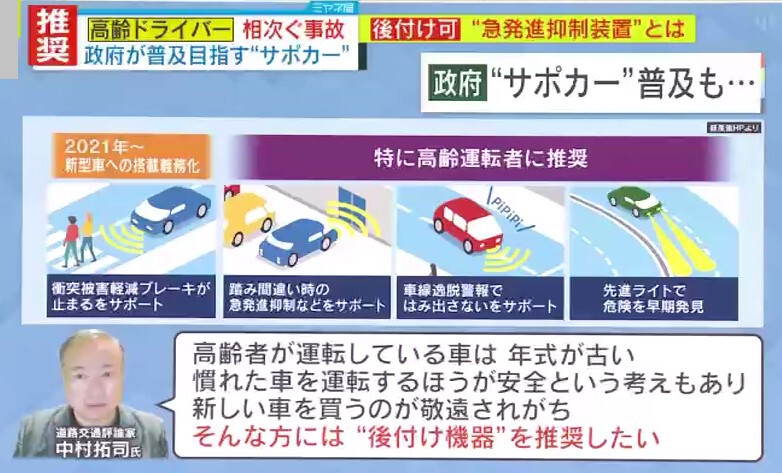 ただ、道路交通評論家・中村拓司氏によると、「高齢者が運転している車は、年式が古い。“慣れた車を運転するほうが安全”という考えもあり、新しい車を買うのが敬遠されがち。そんな方には“後付け機器”を推奨したい」ということです。