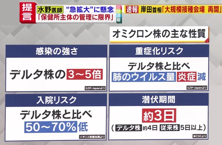 “新型コロナ”の感染急拡大を受け、岸田首相は1月11日、自衛隊による大規模接種センターを再び設置することや、12歳未満の子どもについても希望者に対してできるだけ早くワクチン接種を開始すること、また外国人の新規入国を原則禁止する水際対策を2月末まで継続する方針を表明しました。感染拡大が止まらない「オミクロン株」について、日本感染症学会の指導医でグローバル ヘルスケア クリニック院長の水野泰孝(みずの・やすたか)医師が解説します。