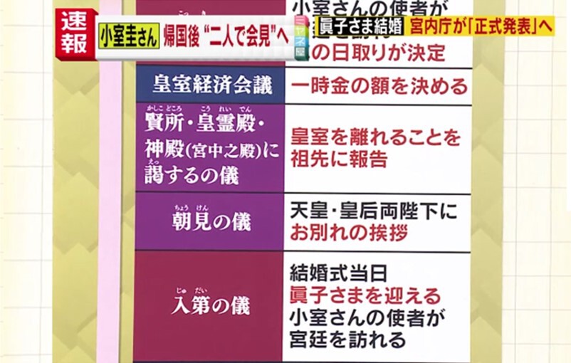 「まあでも、何日というピンポイントの情報でもないですしね。まだそのあたりは確定していないのでしょう。婚姻届けの日に至るまでまだ色々な手続きも含めて詰め切れていないだろうと思います。ですから、今回のスクープといいますか、9月1日から五月雨の小出しのスクープが続いているなと思っています」