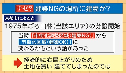 「本来、建ててはいけない土地ですから『違法建築』なので、その時点で『都市計画法違反』です。本当は、その時点で京都市が撤去を命令することも出来たんですが、放置してしまったということですね」