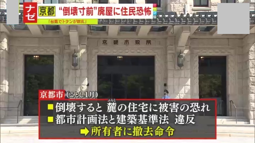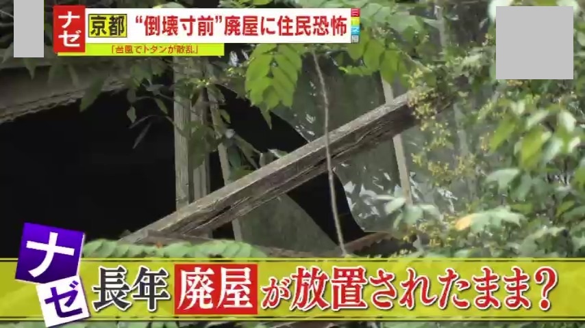 観光地で有名な京都・金閣寺に近い閑静な住宅地に、倒壊寸前の廃屋がいくつも放置されている場所があります。長年放置され、住民からも不安の声が…。さらに廃屋所有者の親族にも独自取材。そこで語られた特殊な事情とは?本村健太郎弁護士の解説です。
