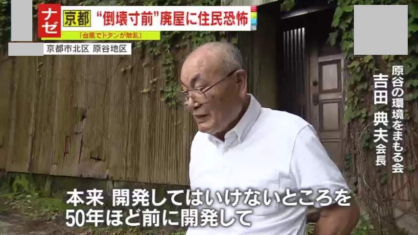 京都市によると、1975年ごろに山林の分譲を開始し、当時『市街化調整区域(建築NG)』から『市街化区域((建築OK)』に変わるかもしれない、という噂があり、土地を買って建ててしまったのではないかということです。その後、老朽化に伴い、所有者が利用しないまま、30年以上、手付かずの状態になったということです。