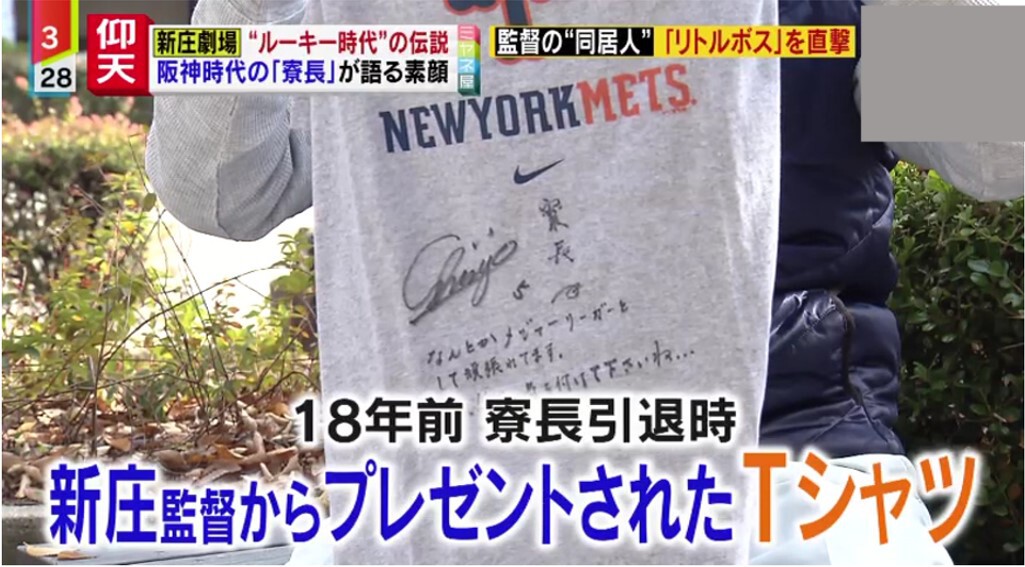そんな梅本さんが、大切にしているというあるものを見せてくれました。今から約18年前、梅本さんが寮長を引退した時に新庄監督がプレゼントしたTシャツです。