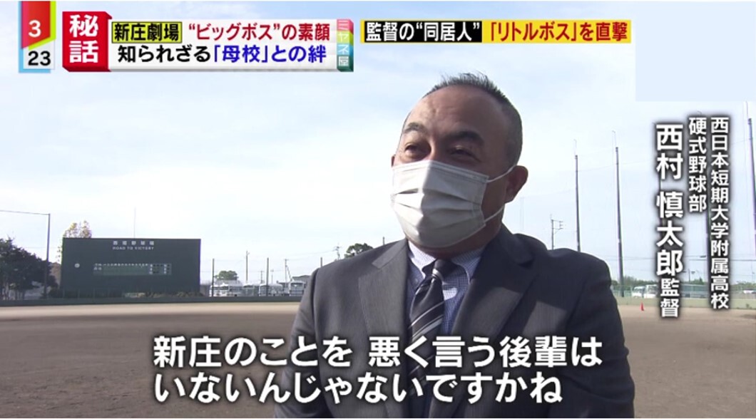 次に訪れたのは、新庄監督の母校、福岡県八女(やめ)市にある西日本短期大学附属高校。話を聞いたのは、新庄監督の元チームメートで、現在は野球部監督の西村慎太郎さん。高校時代の新庄監督について、こう振り返ります。