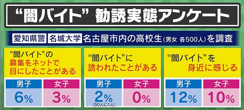 “闇バイト”勧誘の実態です。アンケートで「“闇バイト”に誘われたとことがある」と答えた高校生は、男子で2%に上ります。石原氏によると“闇バイト”に引きずり込まれる背景には「情弱・情強」と「借金」があるといいます。