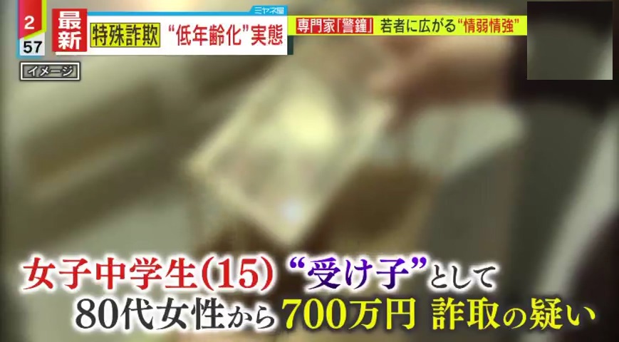 【独自解説】“受け子”役は「15歳の女子中学生」 50人に1人が“闇バイト”の勧誘経験…「特殊詐欺」“低年齢化”の背景にある、「情弱・情強」と「借金」とは