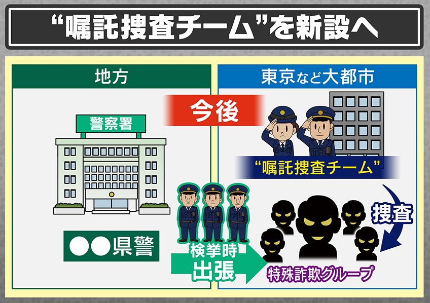 警察も新しい対応に乗り出しています。従来、警察の捜査の原則は「発生地主義」でした。例えば九州で事件が起これば九州の警察が捜査をします。ただ、特殊詐欺グループの拠点が東京だった場合、九州の警察が東京に行って捜査をするということになっていました。そのため捜査員に土地鑑が無かったり、人員や予算の負担の問題が指摘されたりしていました。これを改善するために、警察庁が号令をかけて、“嘱託捜査チーム”というものを東京など大都市圏に設けました。これにより九州の事件でも特殊詐欺グループの拠点が東京の場合、九州の捜査員が東京に行かなくても東京の“嘱託捜査チーム”が捜査を行うようになります。