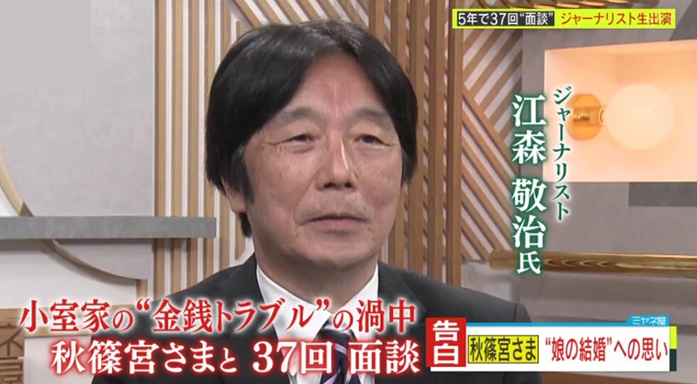 秋篠宮家長女・眞子さんの婚約内定から5年。世間を騒がせ続けた小室家の金銭トラブル問題が起こった当時を含む2017年6月~2022年1月まで、秋篠宮さまと2人きりで37回もの面談を重ねていたジャーナリストがいます。騒動の渦中にあった秋篠宮さまの胸中を記した『秋篠宮』の著者で、元毎日新聞宮内庁担当記者の江森敬治氏です。騒動が一向に解決に向かわない最中に、秋篠宮さまが江森氏に明かしていた本音とはー。