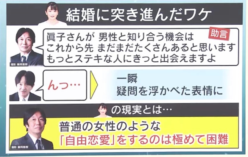 「そうですね。眞子さまが、もう少し父親に対して色んなことを相談されたり、悩みを打ち明けられていれば、もう少し違った解決方法なり対応ができたのかなと思いますけれども」
