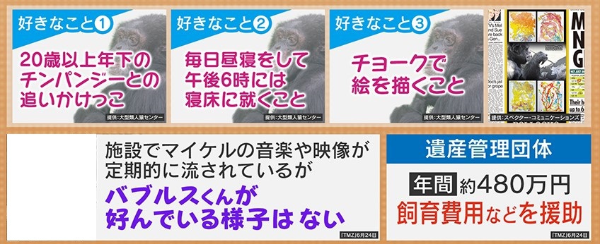 なお、マイケル氏の遺産管理団体は、年間約480万円かかる飼育費用などを援助しているといいます。