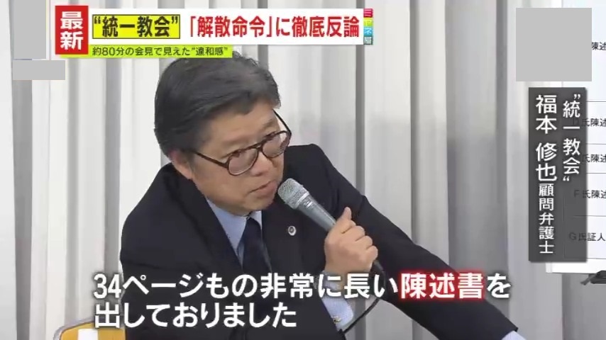 (“統一教会”・福本修也顧問弁護士/会見で)