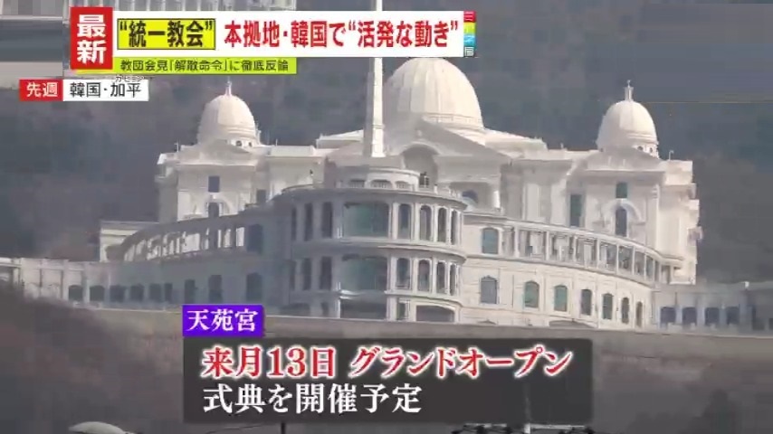 一方、“本拠地”韓国にある本部では、慌ただしい動きが。2025年4月13日にグランドオープンする加平(カピョン)の『天苑宮』では、祝いの式典を開催予定です。
