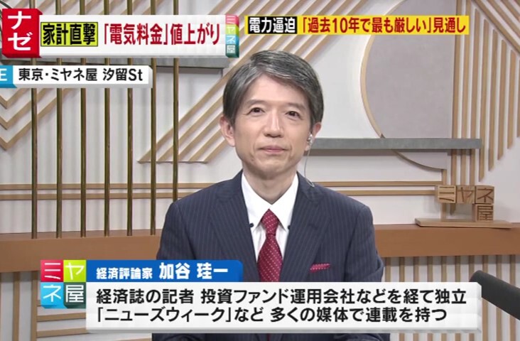 こうした中、この冬心配されているのが“電力のひっ迫”です。資源エネルギー庁によると、この冬の電力需給は、「過去10年で最も厳しい見通し」だといいます。この”電力ひっ迫“の背景にある原因を、経済評論家の加谷珪一(かや・けいいち)さんが解説、さらに、光熱費が“ほぼゼロ”だという「ゼロエネルギー住宅」の驚きの仕組みや、経済評論家・荻原博子(おぎわら・ひろこ)さんが薦める“家庭でできる節電術”を併せてご紹介します。