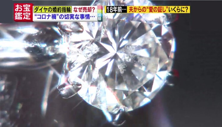 そう、今回持ち込まれたのは、なんと婚約指輪。女性は今から18年前に結婚。当時、夫からプロポーズされた後にもらったものだといいます。大切な思い出の品であるはずの婚約指輪をなぜ売りに来たのでしょうか。女性に話を聞くと、その理由は“離婚”ではないというのですか…。