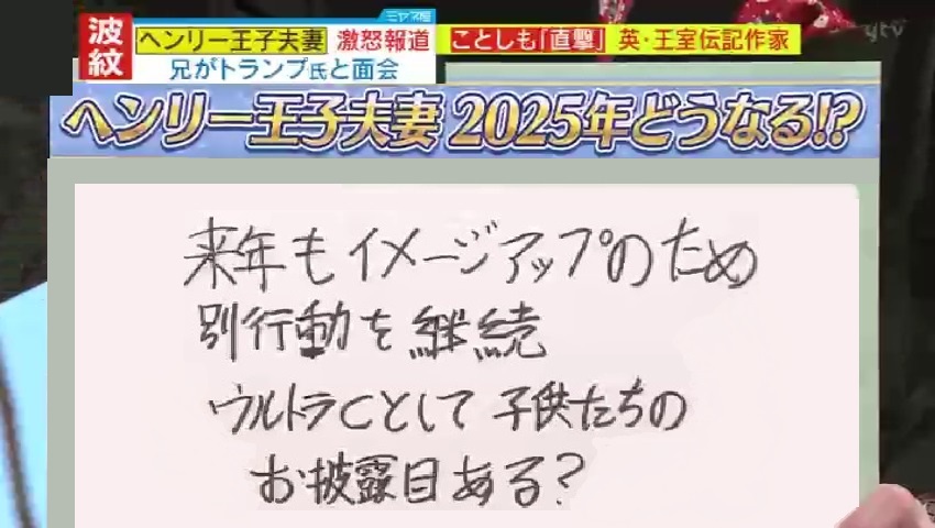 「レビンさんの後に何を言っても、優しく聞こえます(笑)でも、真面目な話、2025年はイメージアップのために別行動を継続して、ウルトラCとして、子どもたちのお披露目があるのかに注目です。なぜかというと、学校に行くようになると行事もありますから、他の子どもたちが普通に活動しているのに、あまりにも隠していると、それもちょっと困ると思うからです」