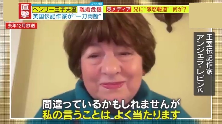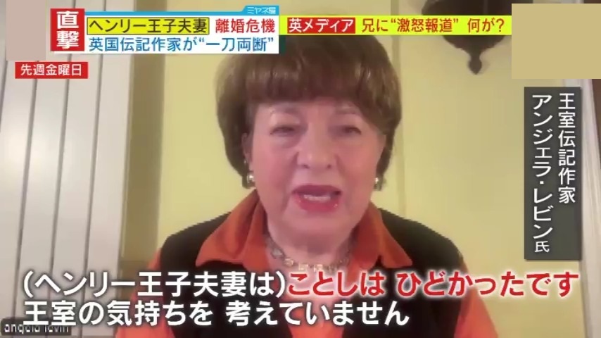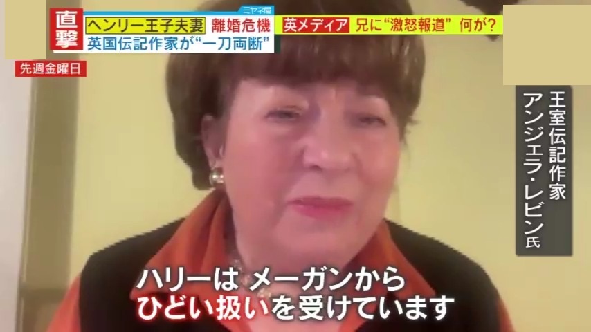 実際、ヘンリー王子とメーガン妃の夫婦仲はどうなのか―。『ミヤネ屋』は2023年に続き、イギリスの“ある大物”を直撃。イギリス王室の伝記作家であるアンジェラ・レビン氏です。これまで王室に関する本を数多く出版し、メーガン妃に対しては数々の辛口発言で知られる人物です。