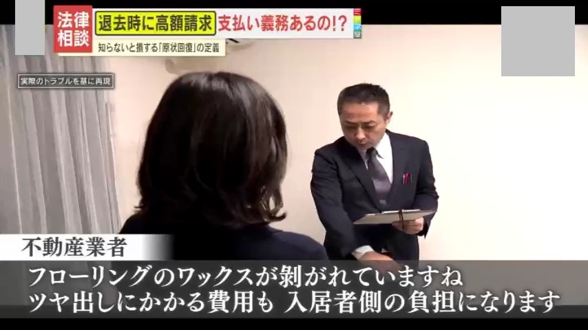 さらに、「フローリングのワックスが剝がれている」として、ワックス費用も上乗せ。その後も、鏡や洗面台の水あか、キッチンの油汚れなど、30分にわたり次々と修繕箇所を指摘され、最終的に提示された見積もりは、全体の原状回復とクリーニング代で、なんと約10万円になったといいます。