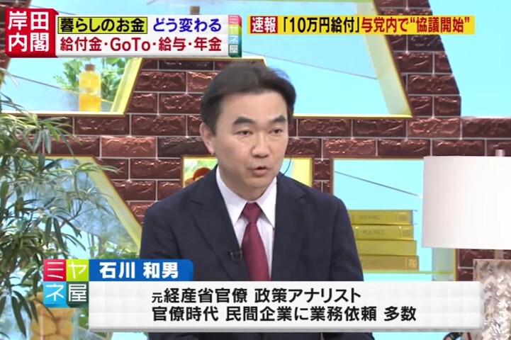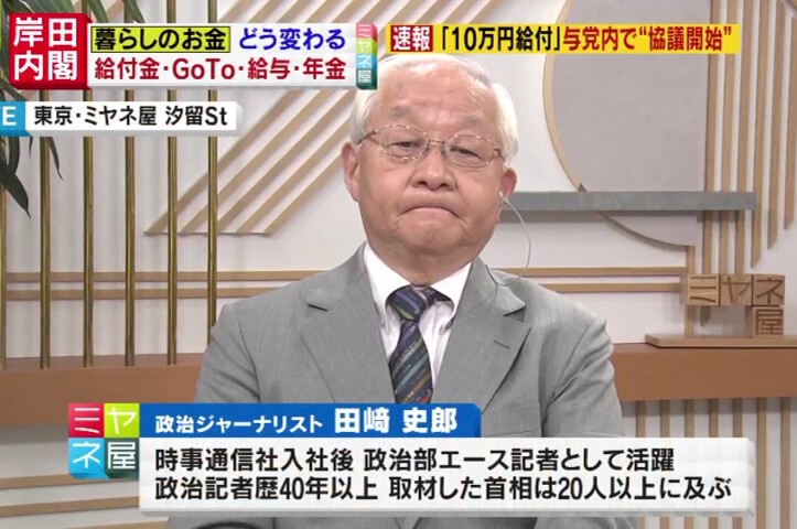 11月10日に発足する「第2次岸田内閣」で、私たちの暮らしのお金はどのように変わっていくのでしょうか? 給付金、GoToトラベル、マイナポイント、給与など様々な疑問について政治ジャーナリストの田崎史郎(たざき・しろう)さんと、元経産省官僚の石川和男(いしかわ・かずお)さんが独自解説します。