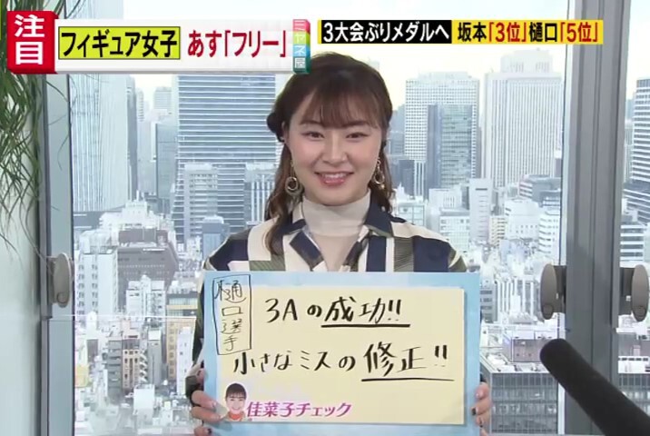「まず樋口選手は、“トリプルアクセルの成功!小さなミスの修正!”がポイントです。これがしっかりできれば、出来栄え点も加点をもらえるような選手ですので、ここが重要になってくると思います。」