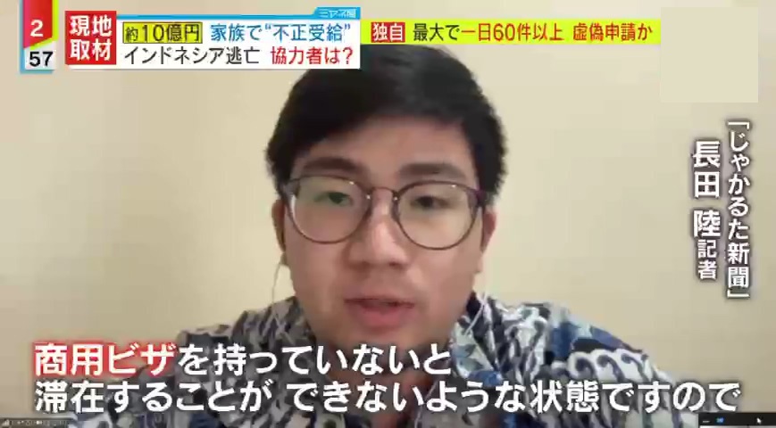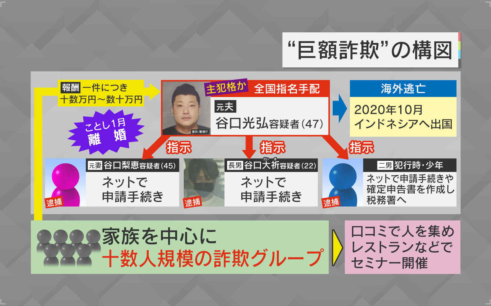約10億円近くの持続化給付金の不正受給に関与したとみられる家族が逮捕された事件で、“主犯格”とみられている全国指名手配中の谷口光弘容疑者。中小企業庁側が、給付金の申請書類の不審点に気付き、申請を却下した直後の2020年10月に、ビジネスなどでもともと土地勘があったと思われるインドネシアに出国していますが、その後の足取りが分かっていません。いったい谷口容疑者は、インドネシアで何をしていたのでしょうか?知人や関係者に話を聞きました。
