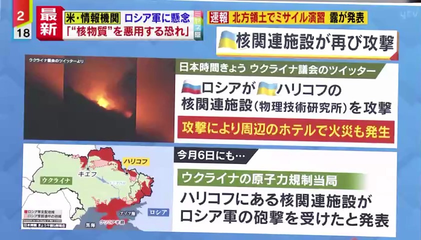 3月10日、アメリカ国防総省高官はロシア軍がウクライナの首都キエフ中心部まで北西15キロの地点に迫っていて今後1、2週間でキエフを包囲することが可能との見通しを明らかにしました。こうした中、アメリカ議会の公聴会で証言した、ヘインズ国家情報長官は。原発の占拠や病院への攻撃を行うロシア軍について市民の安全を無視した無謀な行動を取っていると指摘、核物質を悪用するおそれがあるとの見方を示しました。