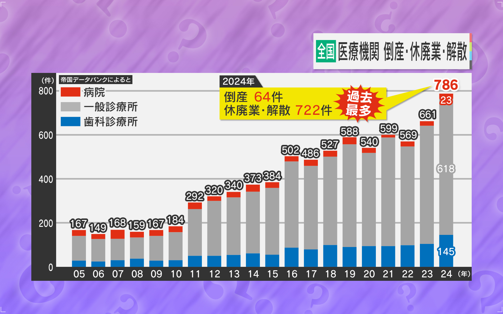 「また、人件費や光熱費が上がっていて、さらにコロナをうまく乗り越えられなかった中小規模の病院が非常に苦労していて、外来に患者が戻らなかったり、健診や人間ドックに人が来なくなったりして、かなり倒産しています。地方だと、後継者の問題などもあります」