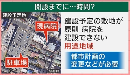 しかし、病院の建て替えには数年かかる見込みなうえ、建設予定の敷地が原則『病院を建設できない用途地域』で、都市計画の変更などが必要だということです。