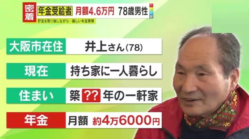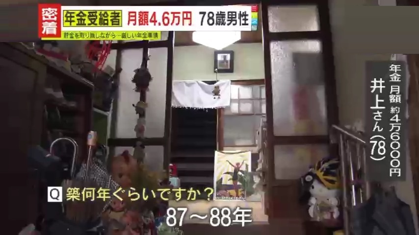 現在の収入は、月額約4万6000円の年金のみだという井上さん(78)。現在は持ち家の一軒家に一人暮らしだそうですが、どうやら、相当古い自宅だそうです。