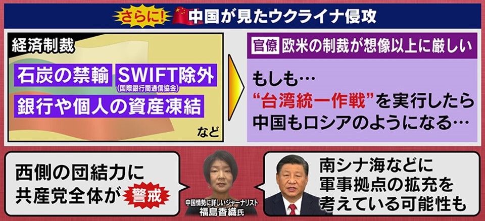Q.アメリカは直接武力攻撃をしませんが、経済制裁などを次々と打ち出してNATOがまとまったことは、中国としては目算が違ったということですか?
