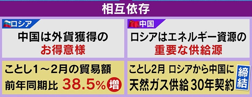 中露の深い関係を示すように、2022年の貿易額の1~2月期は前年同期比38.5%増になっています。また、天然ガス供給の30年契約という大型契約も締結しています。