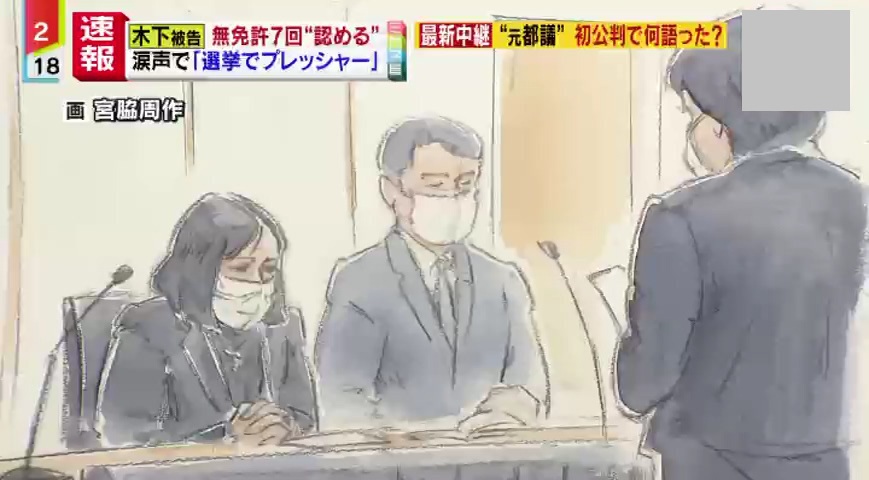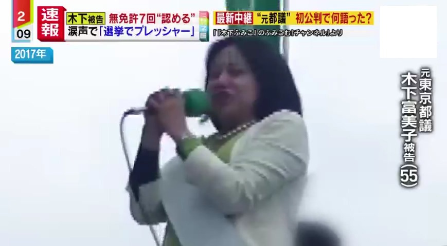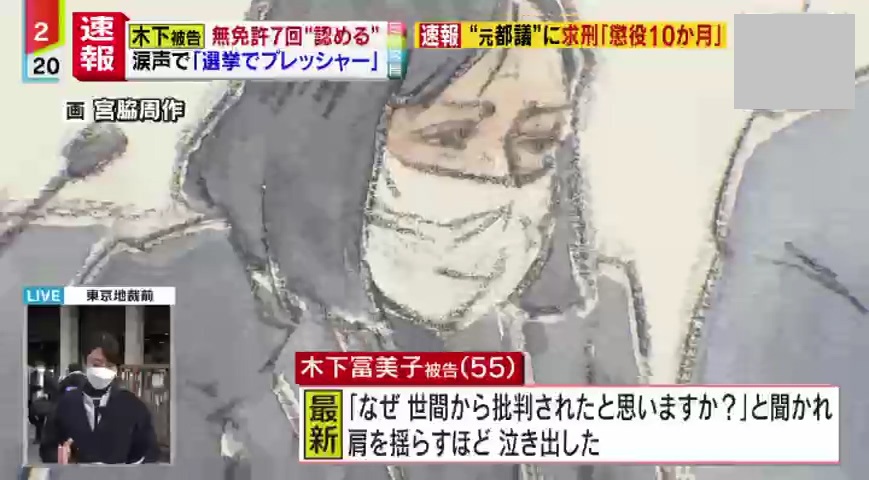 免許停止期間中、7回にわたり東京都内の路上で無免許運転を行ったとして、道路交通法違反に問われている元東京都議会議員・木下富美子(きのした・ふみこ)被告の初公判が1月25日、東京地方裁判所で行われた。