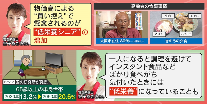 ■「高くて買えない」物価高による買い控えで“低栄養シニア”増加傾向に 増える単身世帯・病気や加齢による“食欲の減少”でさらに加速か…