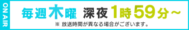 毎週水曜 深夜1時59分~ ※放送時間が異なる場合がございます。
