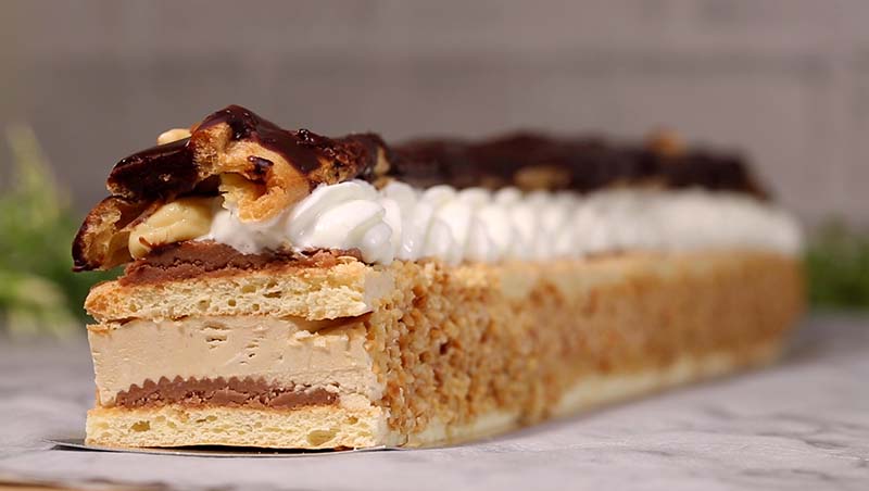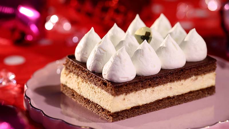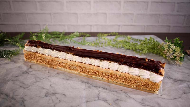 軽い食感のビスキュイ生地にミルクチョコレートガナッシュを絞り