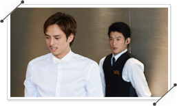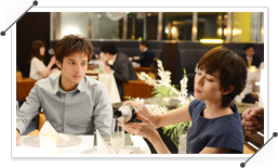 笑顔でワインを注ぐウエイターに、はるが微笑んで答える。