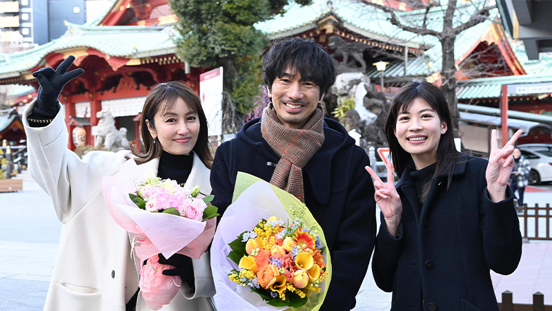 主人公・拓郎を演じた眞島秀和が、絵里役・矢田亜希子と揃ってクランクアップ。厳しい寒さとなったこの日、拓郎と絵里が 2 人で話しながら歩くシーンを撮影。学生時代を思い出し、過去の思い出を丁寧に紡いでいく物語の終盤を彩るシーンの撮影が進められた。