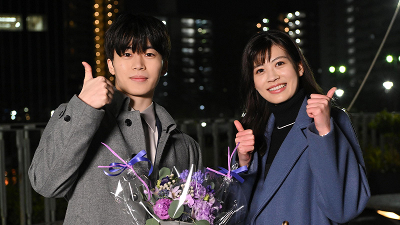 最後のカットを撮り終え、「オールアップです!」の掛け声と共にクランクアップを迎えると、現場は大きな拍手に包まれた。そして、先に撮影を終えていたくるみ役の中田青渚もサプライズで登場!2 人に花束を贈呈した。主演の眞島は「無事にクランクアップ出来て、ホッとしています。」と安堵の表情を浮かべ、「こんな素敵な作品の一員になれて楽しかったし、幸せな時間でした!」と感謝の気持ちを伝えた。矢田は「皆さんと楽しく過ごすことができました!」と笑顔でコメント。「私の周りの友人たちもこのドラマにドはまりしていて、その感想を毎週聞くのが楽しみです」と愛情いっぱいのコメントを寄せ、現場は再び温かい拍手と笑顔に包まれた。