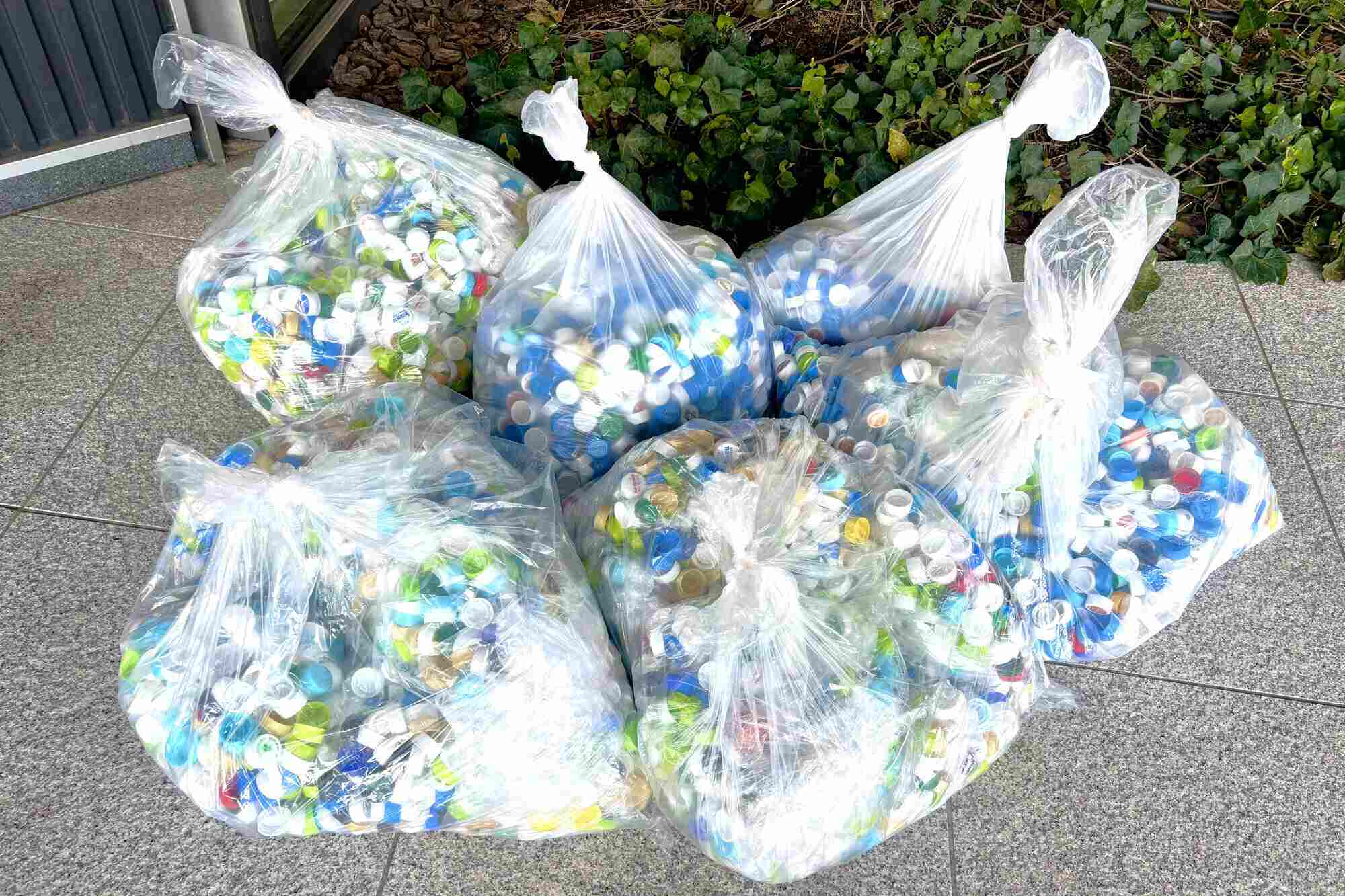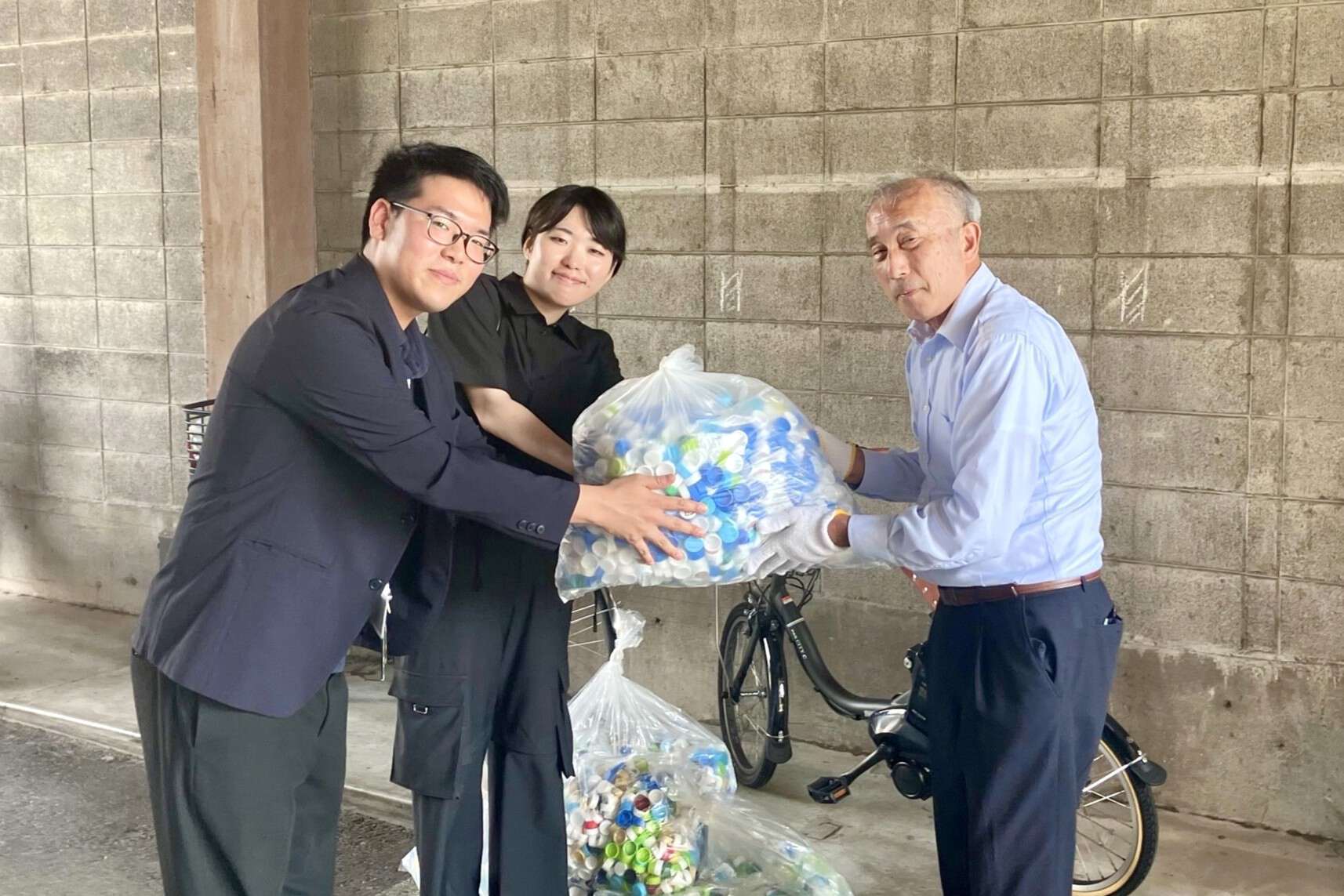 集めたボトルキャップを回収業者へお届け
