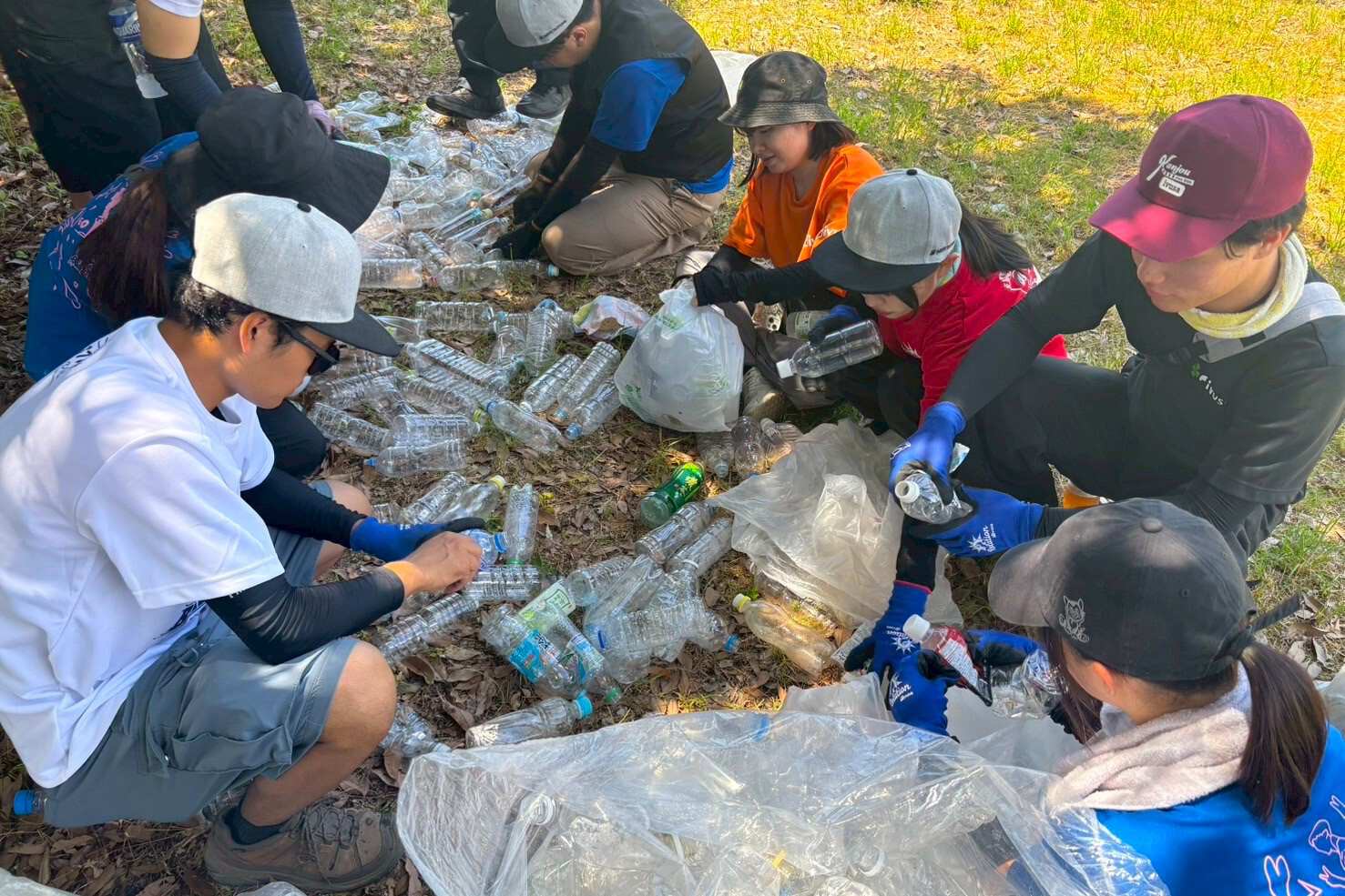 ペットボトルの「キャップ」「本体」「ラベル」を分別するIVUSAの学生 -