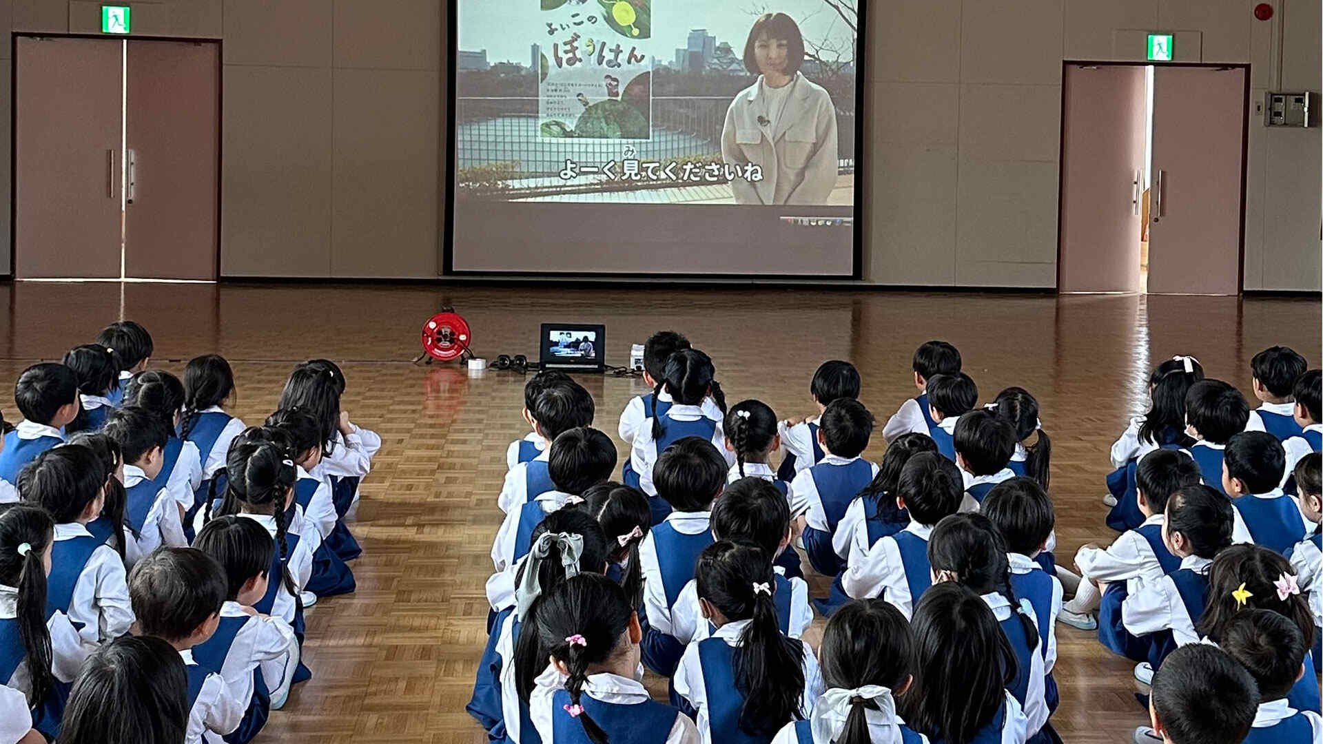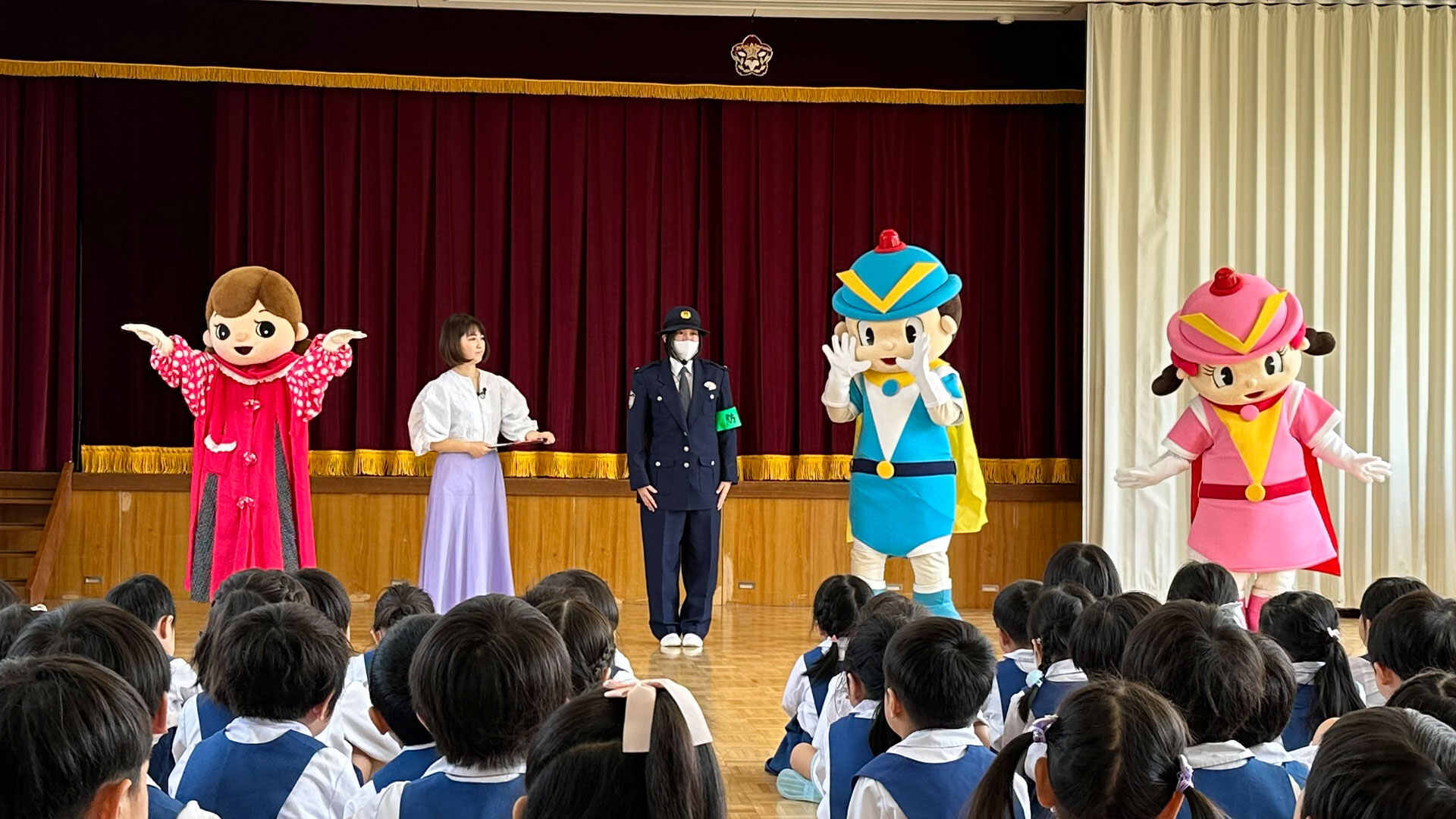 4月11日には城星学園幼稚園(大阪市中央区)で、完成した動画を約90人の園児に向けてお披露目。𠮷田アナが大阪府警察生活安全指導班の警察官やマスコットキャラクターと一緒に、寸劇を交えた「防犯教室」を行い、子どもたちに普段から防犯意識を強く持つことの大切さを伝えました。