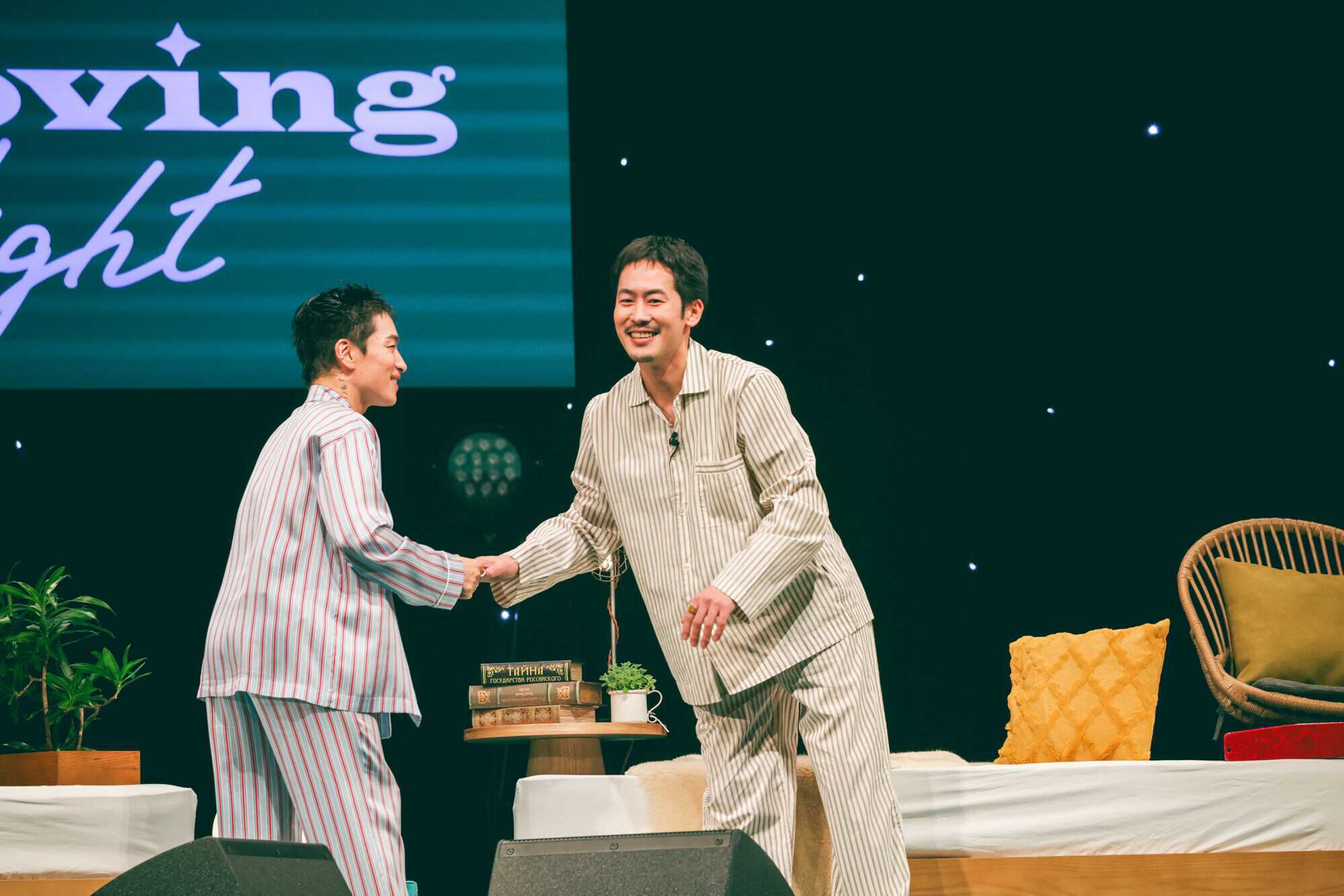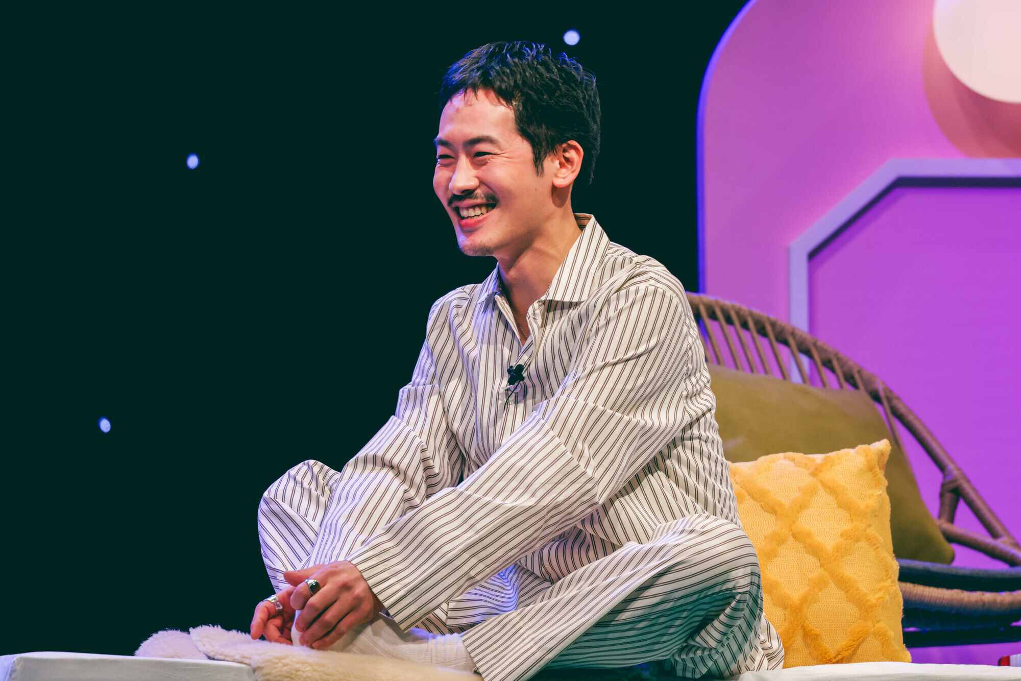 ベッドに腰かけリラックスした状態で、まるでアーティストとお客さんが「同じ部屋」にいるような空間で、自分たちの考えを共有します。これまで、「どんな時に怒る?」「価値観が違うと感じる人と接する時、どうする?」「音楽ライブが社会にできることは?」など、社会的なテーマについても話してきました。