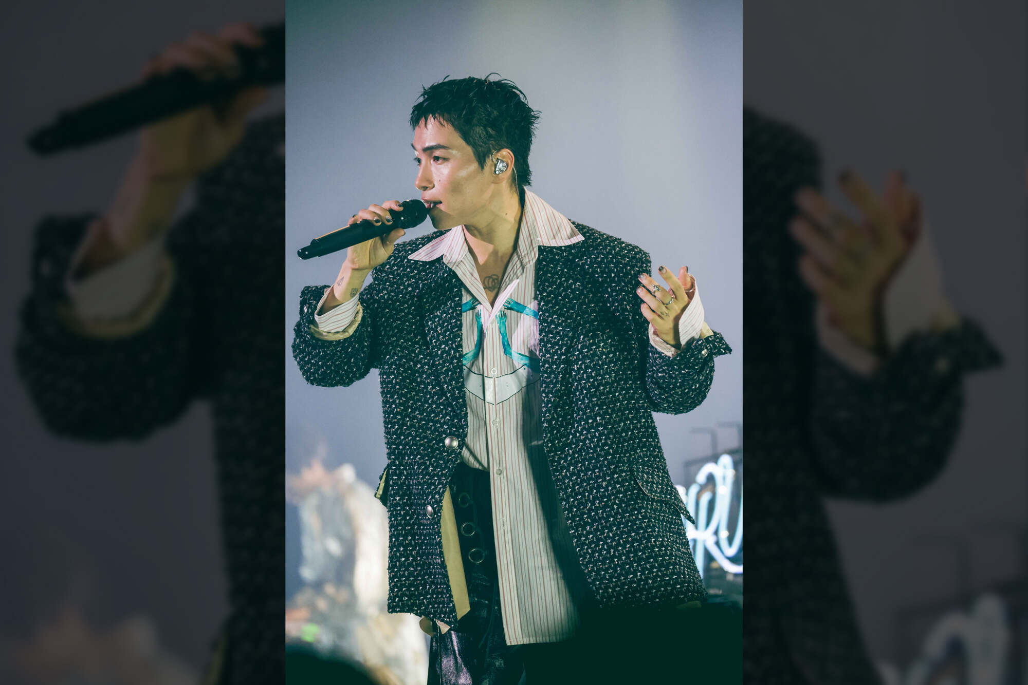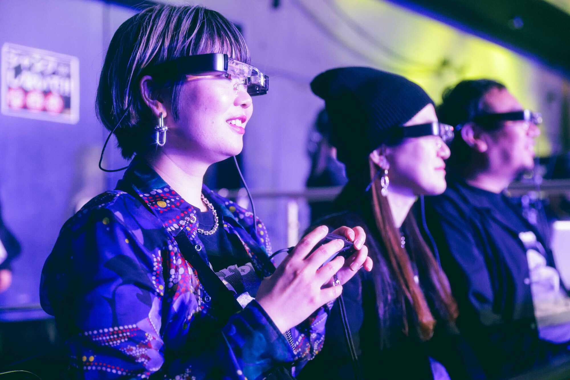 2024年3月19日(火)Zepp Nambaで、『Grooving Night』第3回を開催。ホストアーティストSIRUP(シラップ)と、ゲストアーティストTENDRE(テンダー)の2組がライブ&トークを届けました。『Grooving Night』では、すべての方々に安心して楽しんでいただけるイベントを目指し、視聴覚障害のある方への鑑賞サポートを試験的に導入。弱視(ロービジョン)の視覚障害鑑賞サポートとして、ステージのライブ映像を手元のタブレットで鑑賞できるようにし、タッチパネルの表示画面を指で拡大してご覧いただきました。聴覚障害鑑賞サポートでは、メガネ型ディスプレイを装着いただき、ステージを鑑賞しながらアーティストのMCや歌詞を字幕でご覧いただきました。