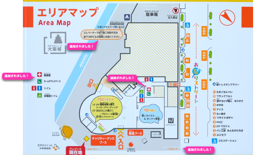 「スロープ」「救護室」「カームダウンスペース」の位置、「地下鉄のエレベーター情報」など、バリアフリーマップの要素を強化しました。