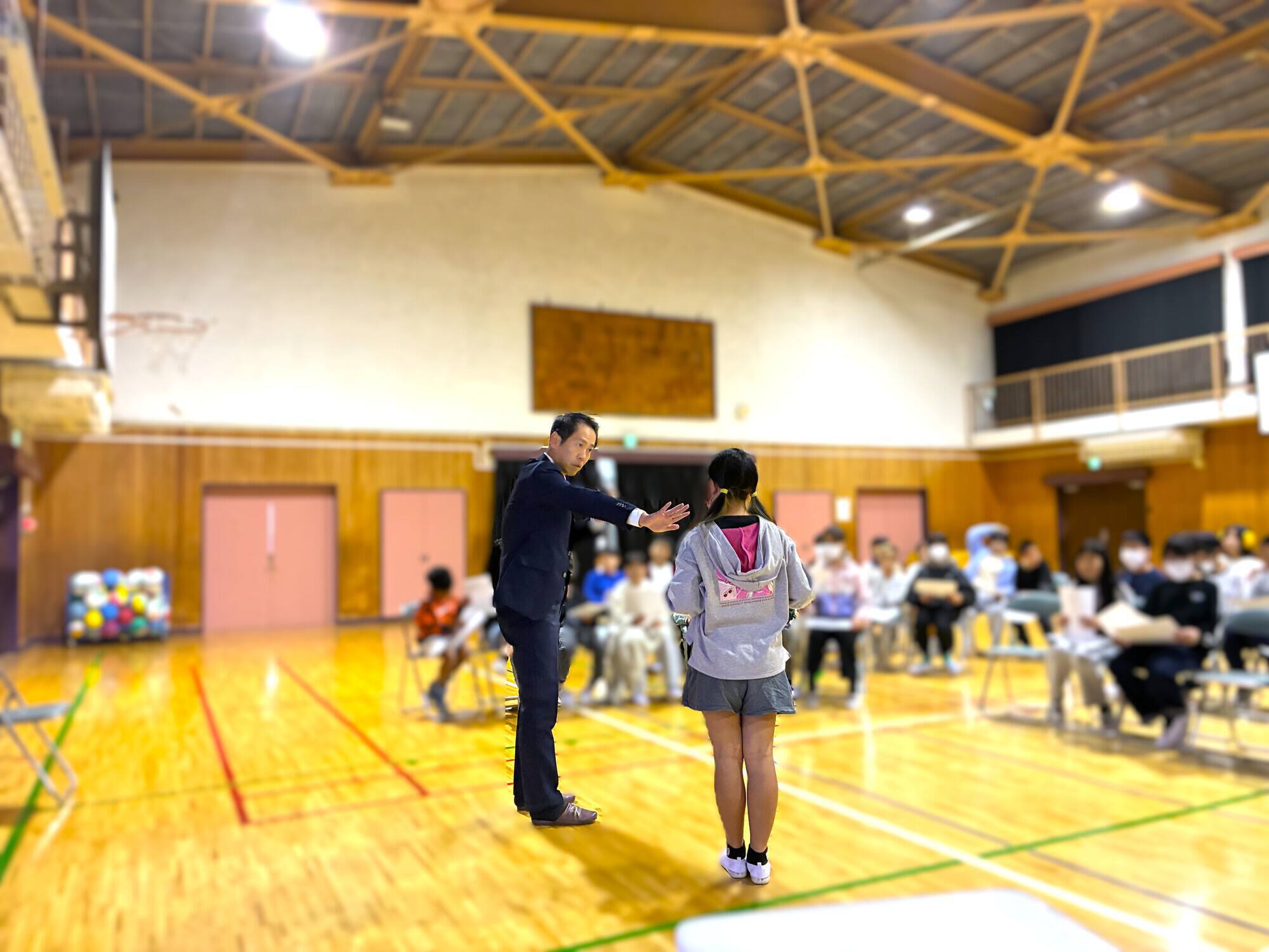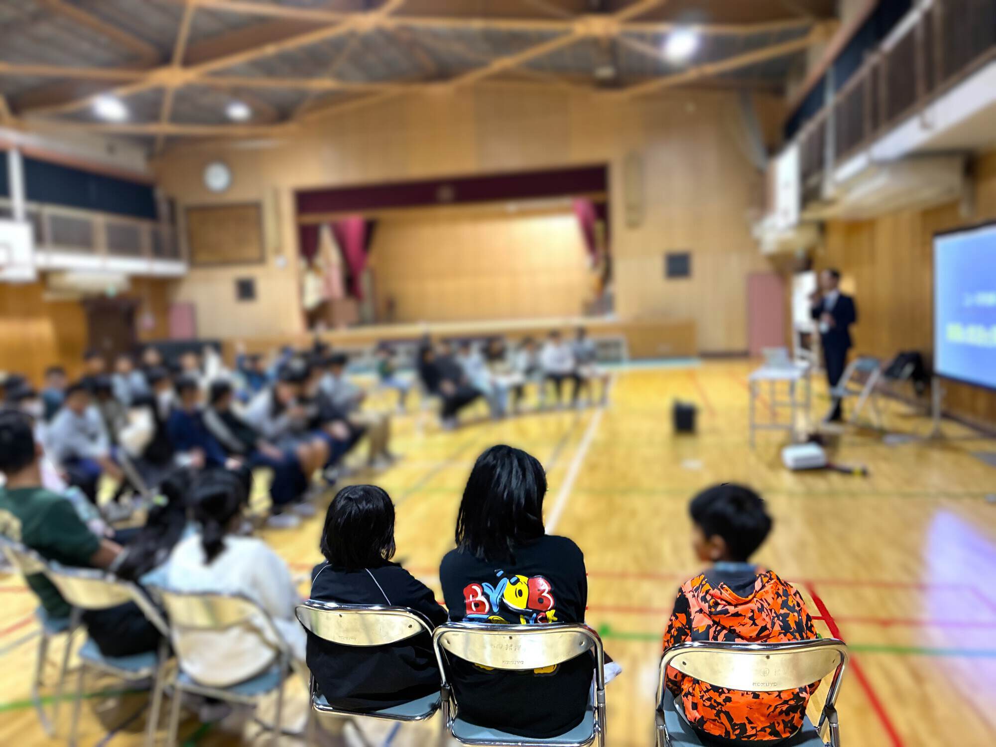 当日は、5年生約60名の児童が体育館に集まり、熱心に参加してくれました。