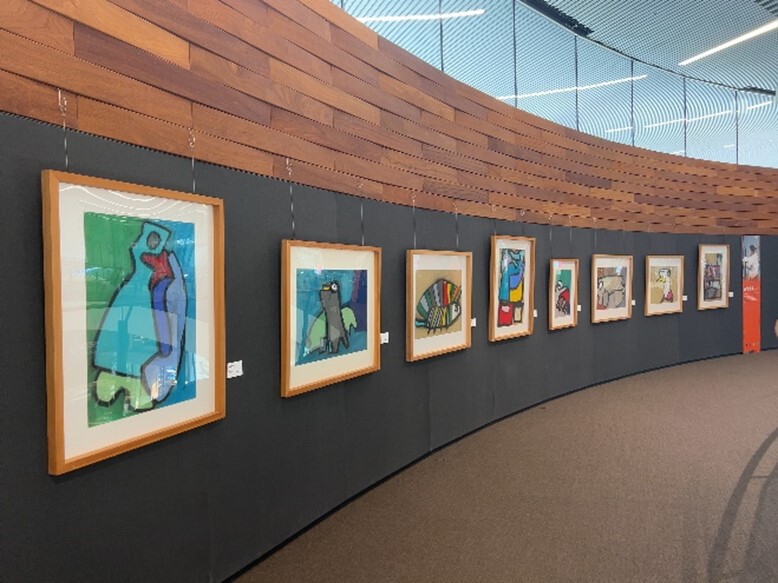 今回は、兵庫県西宮市で働く知的障害のある8名が描いた絵画の展示をします。