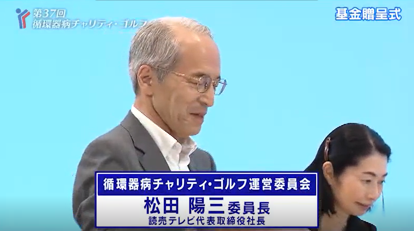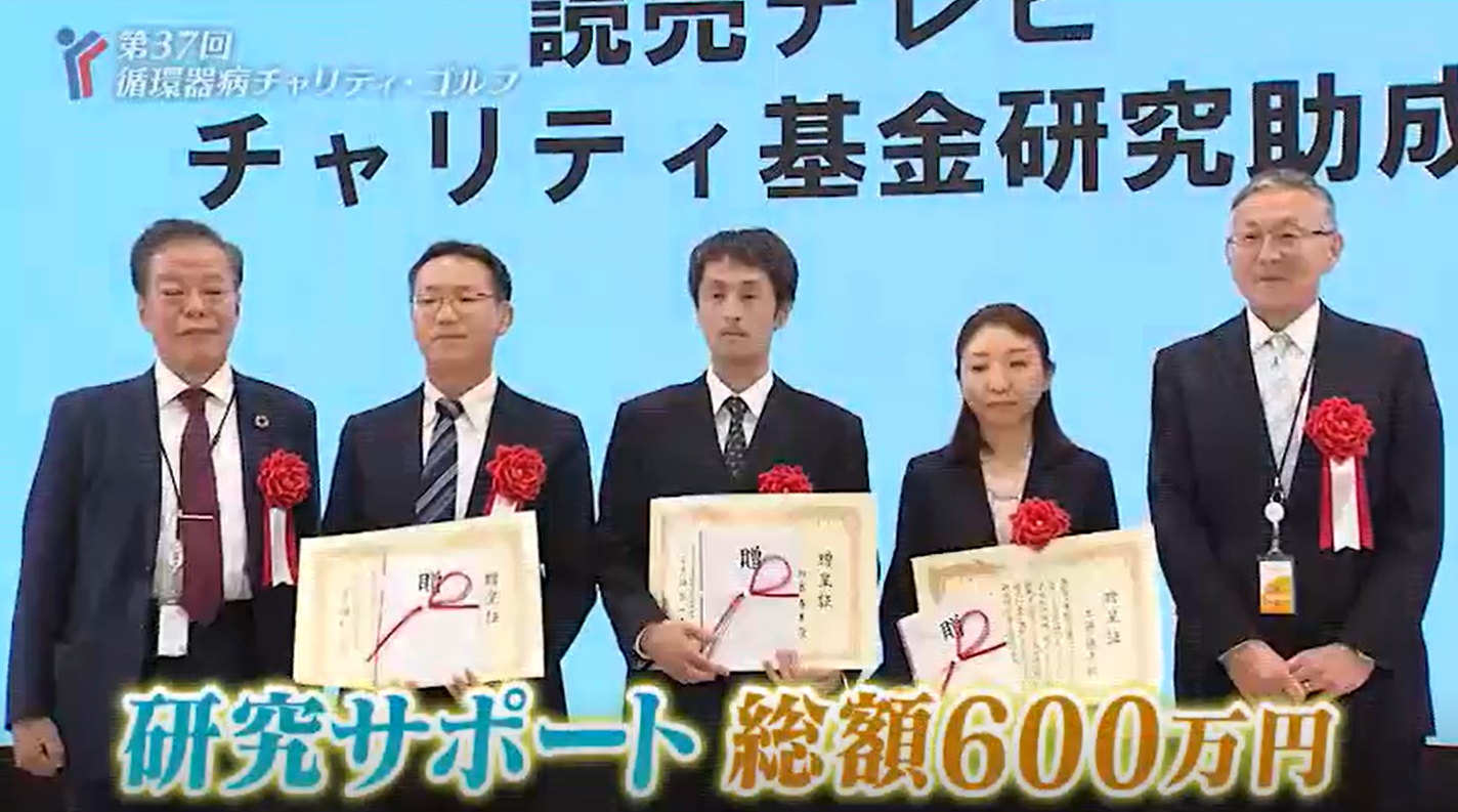 - 「ytvサステナビリティ・プロジェクト」のとして進めている ytv SDGs × 国循(こくじゅん)プロジェクト。公益財団法人「循環器病研究振興財団」(大阪府吹田市)が創設した、「読売テレビチャリティ基金研究助成」は、はじめてとなる助成対象者を決定しました。読売テレビは、3人の対象者の贈呈式を行い、今年11月放送の「循環器病チャリティ・ゴルフ&医療セミナー」の中で贈呈式の模様を紹介しました。(サステナビリティ部長 山川友基)