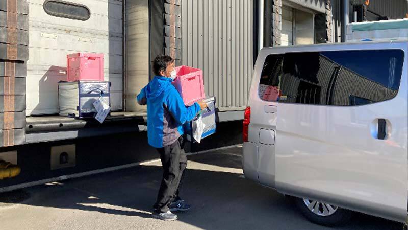 そんな皆さんの手によって仕分け、箱詰めされた食品を届けるときは、各施設団体と日々交流のあるパルコープ職員さんが配送担当として活躍され、「○○食堂さんへの冷凍品のお届けは来週〇曜日がよい」といったきめ細やかな対応をしています。