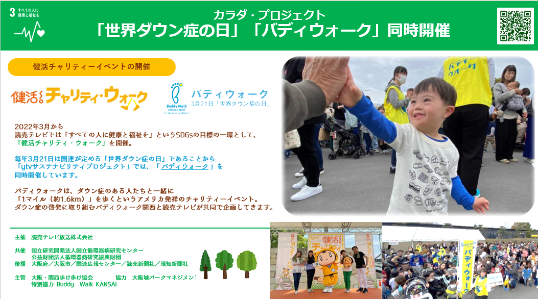 1988年から読売テレビでは国立循環器病研究センターと連携し、チャリティーイベント の開催や啓発冊子の製作に協力しています。