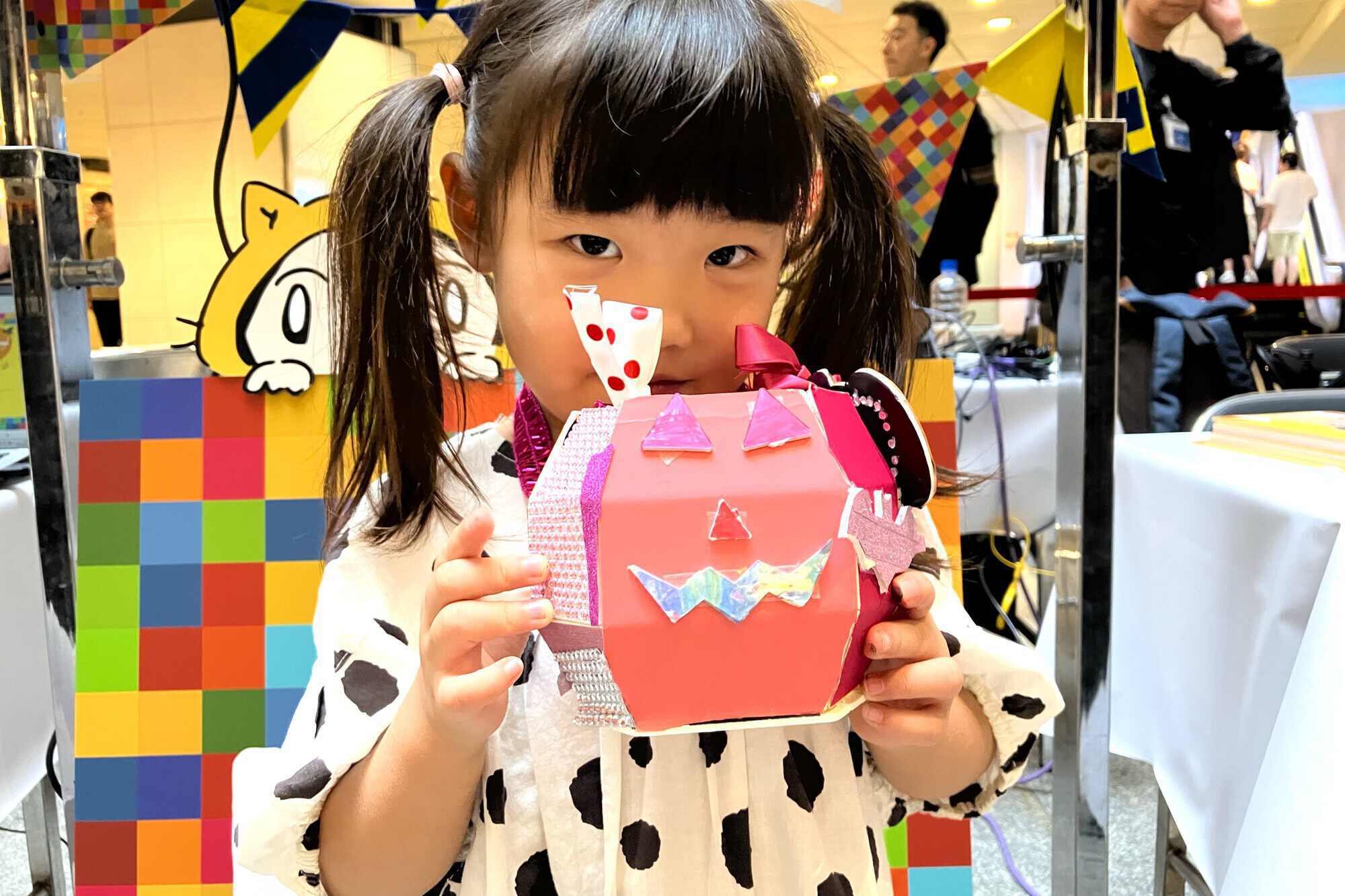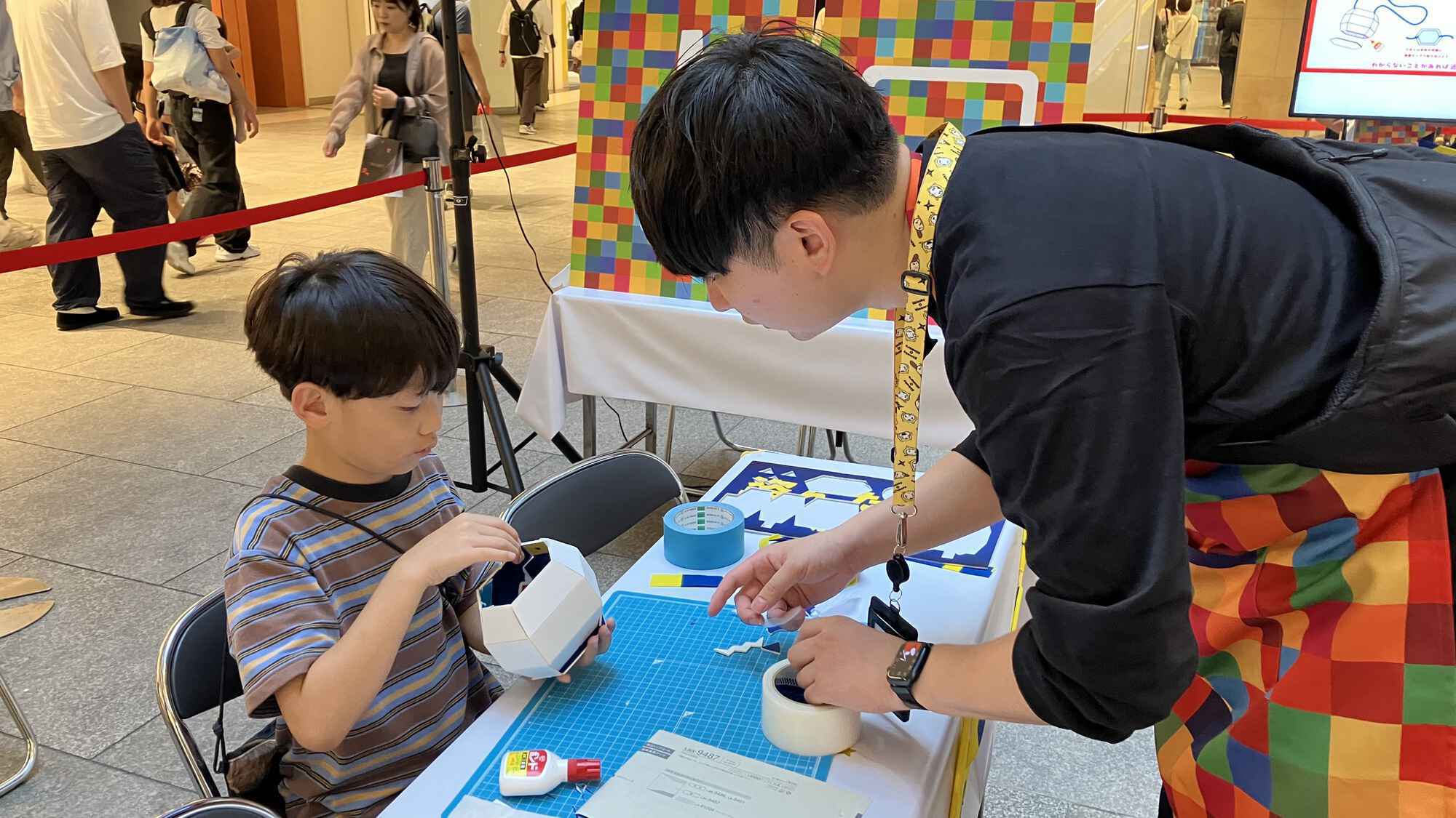作品に没頭する子どもたちの姿はまさに真剣そのもので、いつの間にか、お父さんお母さんたちも一緒にのめりこんでいきました。出来上がった作品は、どれも子どもたちの豊かな創造力にあふれたものばかりで、同じ材料を使っても、どれひとつも同じ作品はありません。読売テレビのプロのアートディレクターたちも、作品の出来栄えに、ただただ感心するばかりでした。