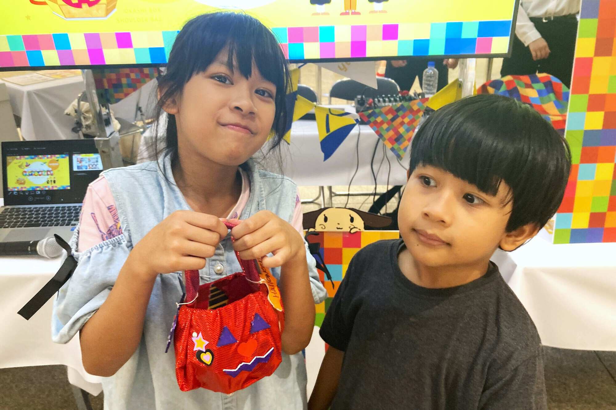 そして、何よりも嬉しかったのは、ワークショップの体験後、子どもたちが、自分で作ったお菓子カバンや帽子をうれしそうに身に着けて、大切に持ち帰ってくれたことです!